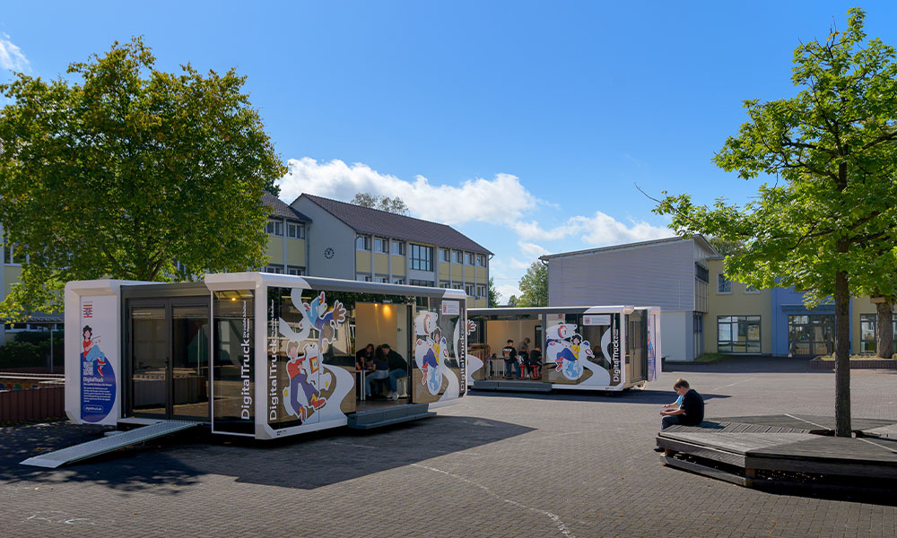 Jede Woche fährt der DigitalTruck an eine Hessische Schule und macht digitale Bildung direkt vor Ort praktisch und erlebnisreich erfahrbar.