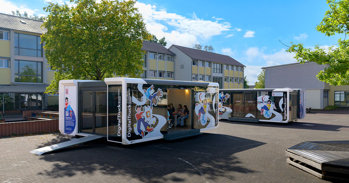 Der DigitalTruck, eine mobile Digitalschule, besucht Schulen in ganz Hessen. Durch anschauliche Methoden weckt er das Interesse an modernen Lern- und Lehrinhalten. Innerhalb eines Kalenderjahres wird der DigitalTruck alle 15 Schulamtsbezirke in Hessen besuchen und den Schulen jeweils eine Woche zur Verfügung stehen.